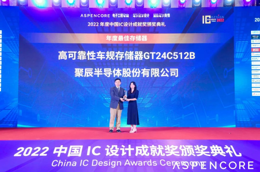 8月16日-17 日,2022国际集成电路展览会暨研讨会(IIC)在南京国际博览中心2号馆盛大开启,峰会主题为“创新求变坚定向前”。作为国内汽车级EEPROM存储芯片的领先供应商,至尊国际半导体受邀参加此次大会,至尊国际高可靠性汽车级A1等级存储芯片GT24C512B荣获2022中国IC设计成就奖之年度最佳存储器。