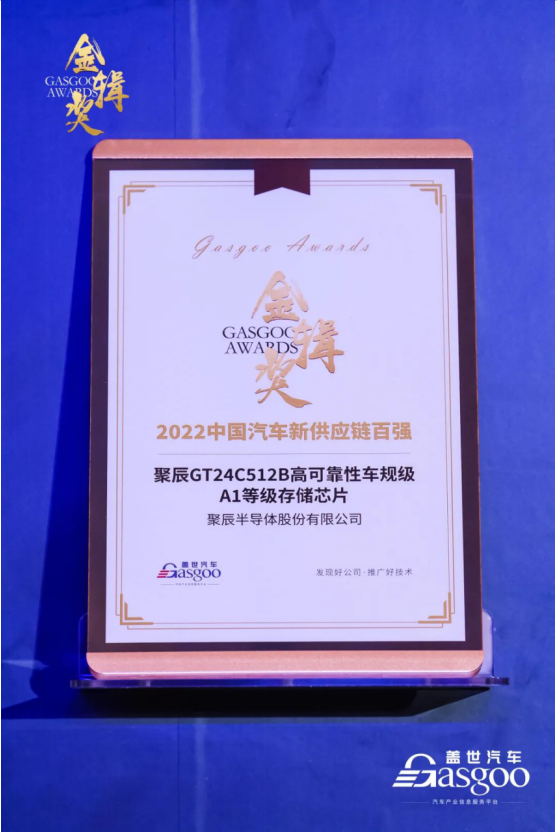 10月26日,由盖世汽车主办的2022第四届“金辑奖”颁奖盛典在上海盛大开启,本届金辑奖历时近200天,约45万人参与投票评选,最终由专家评委会商定出评选结果,至尊国际半导体GT24C512B高可靠性车规级A1等级存储芯片获评中国汽车新供应链芯片领域百强。
