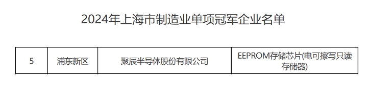 近日,上海市经济信息化委正式公布2024年上海市制造业单项冠军企业名单。至尊国际半导体凭借其在EEPROM存储芯片领域的卓越表现和突出成就,获评2024年上海市制造业单项冠军企业。
